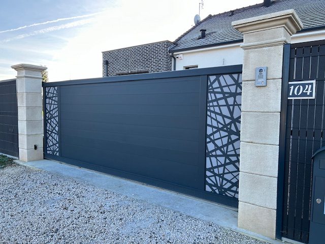 Ajout de motifs et liserés aspect inox pour un portail personnalisé