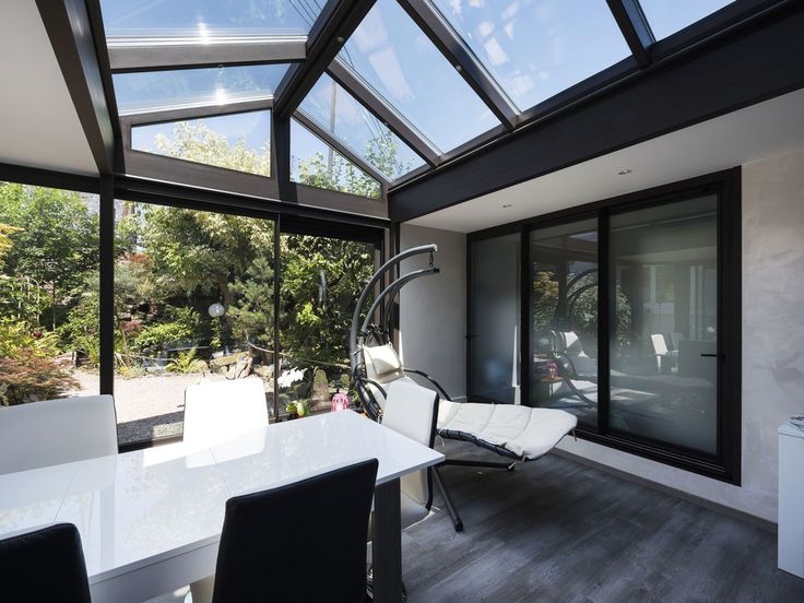 Avec ses éléments géométriques et ses lignes simples, la véranda contemporaine prolongera idéalement une maison contemporaine ou construite dans un style moderne.