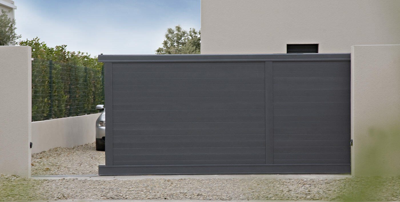 L’absence de traverses haute et basse, associée à des lames aluminium de 250 mm de hauteur, confère au portail Wolf® un design moderne et épuré qui sublimera l’entrée de votre habitation.